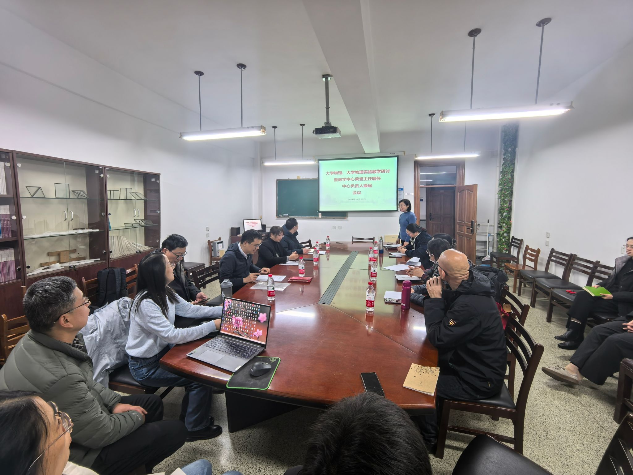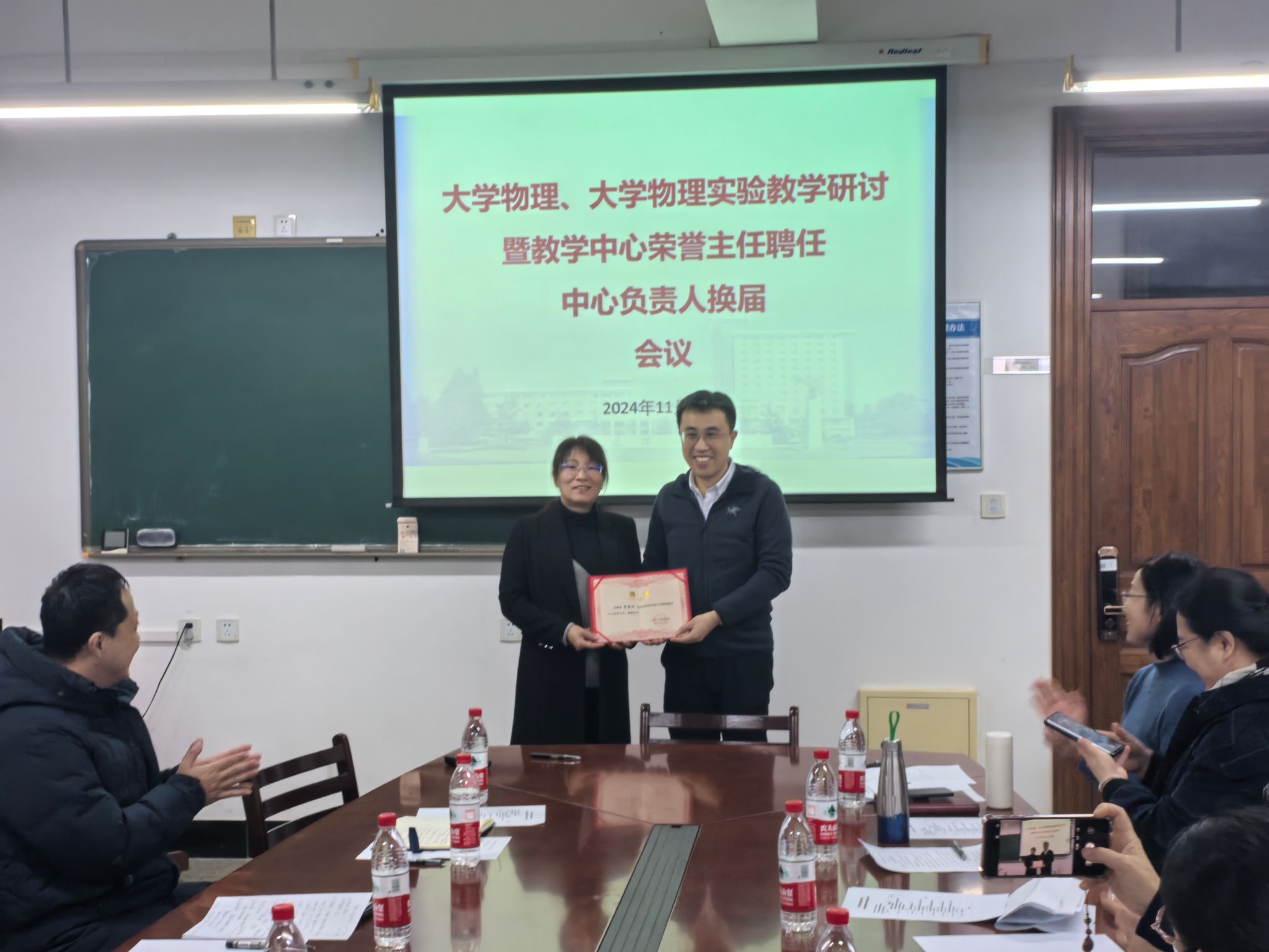 会上进行了大学物理教学中心负责人换届工作。李建东为中心常务副主任,白洪亮、王淑芬、吴兴伟为中心副主任。各中心副主任分别对自身分管领域工作进行了详细的介绍。