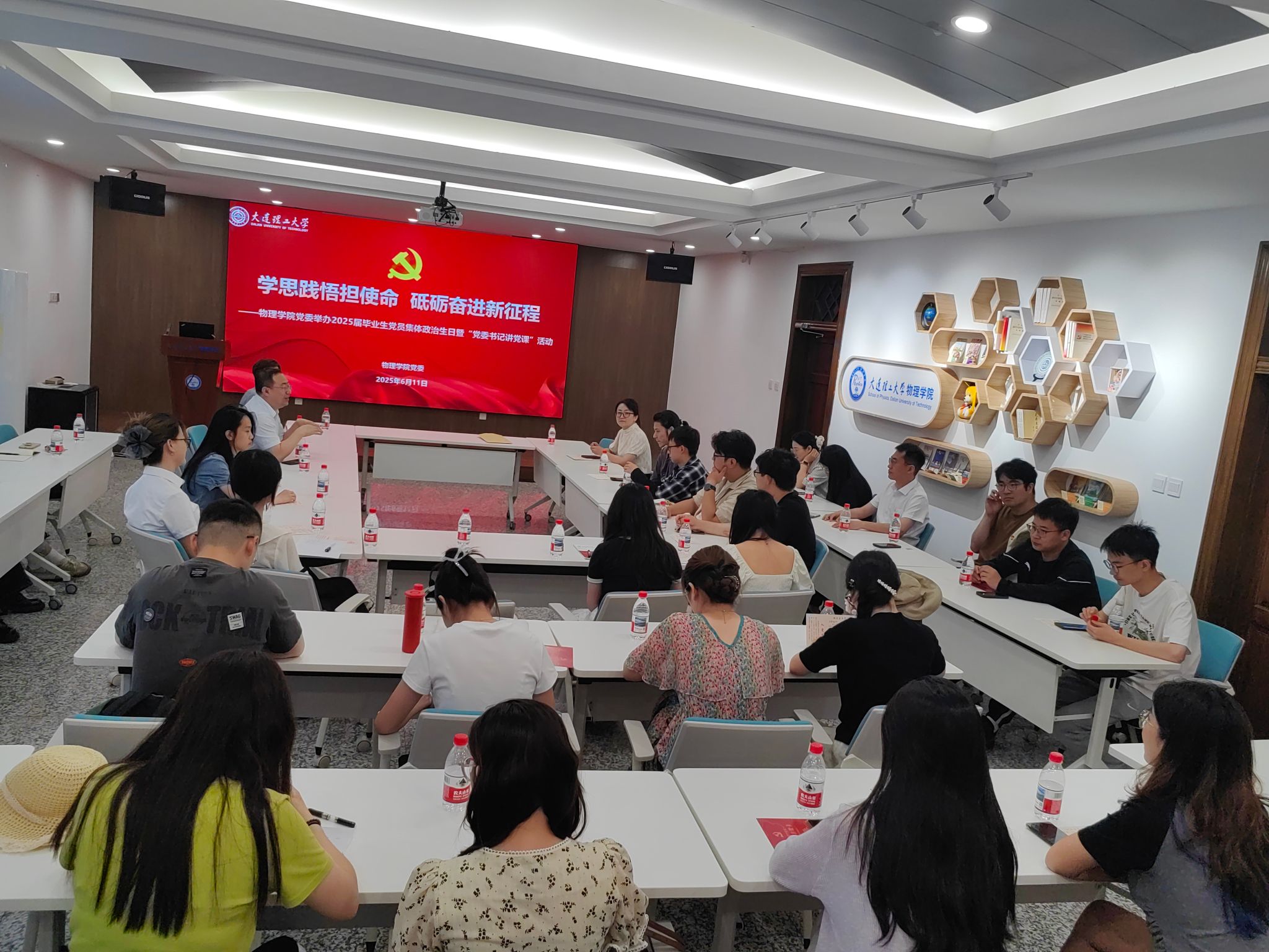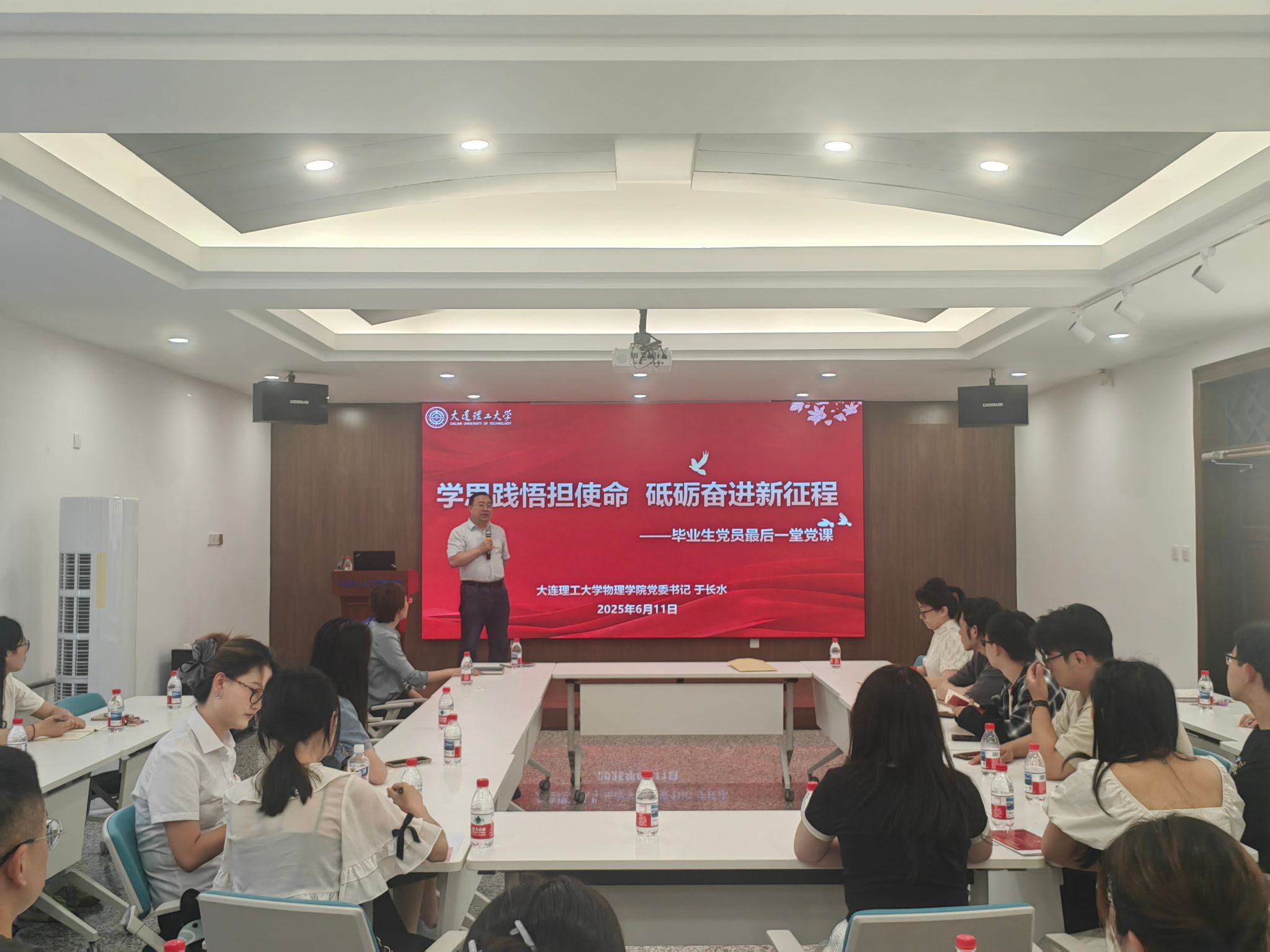 为切实加强毕业生党员教育管理,引导其深学笃行习近平新时代中国特色社会主义思想,坚定理想信念,担当时代使命,新利·体育(中国)官方网站党委于2025年6月11日下午在物理楼322室举办2025届毕业生党员集体政治生日暨“党委书记讲党课”活动。活动由学院党委副书记兼纪委书记于艳敏同志主持,学院党委书记于长水、党委副书记兼副院长周福良、党委组织员纪丹红、学生工作办公室主任张弛及2025届毕业生党员参会。
