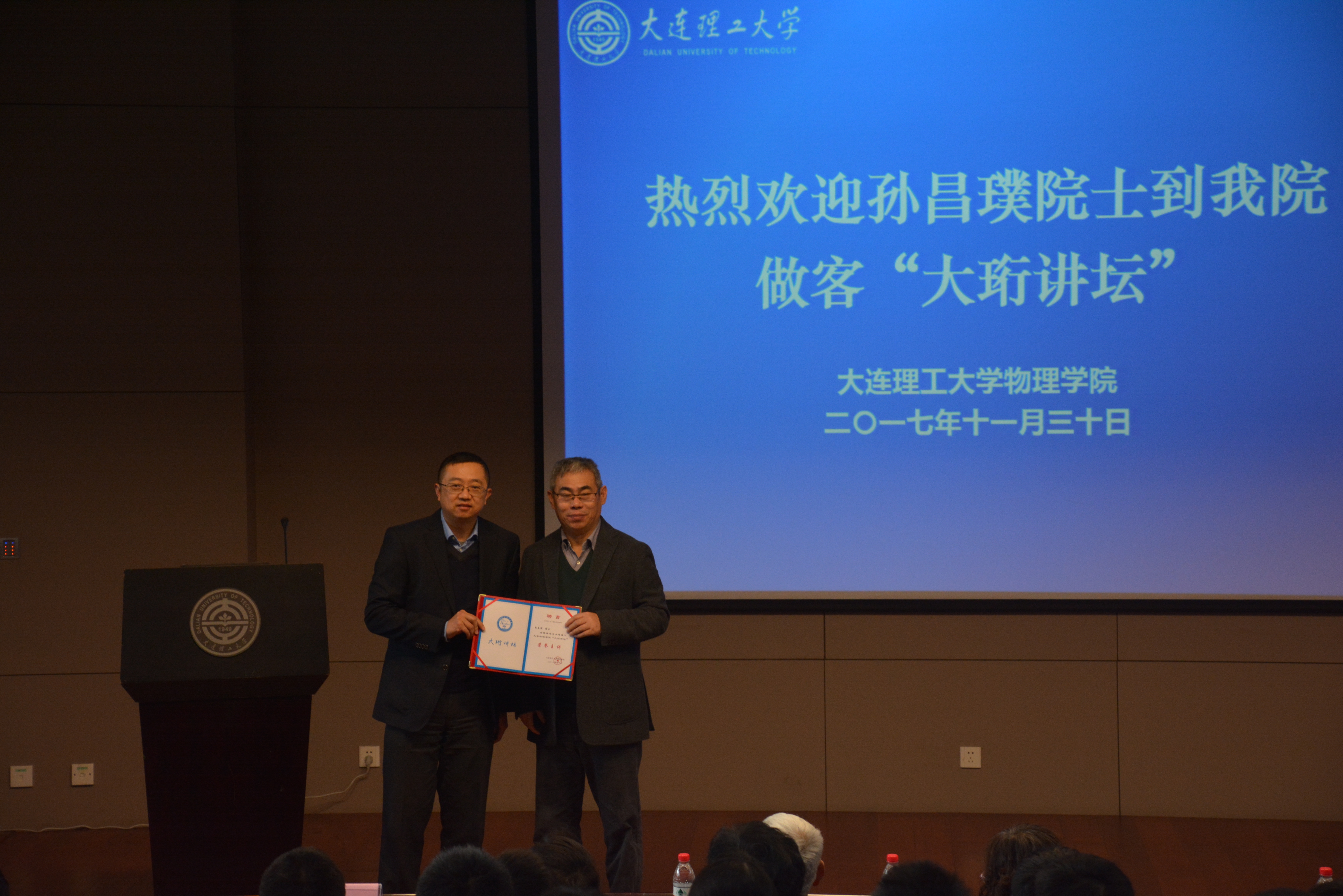 在讲座开始前,新利·体育(中国)官方网站赵纪军院长向孙昌璞院士颁发“大珩讲坛”荣誉主讲聘书。