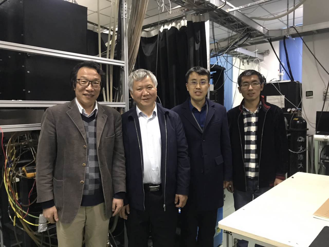 刘永院长首先参观了丁洪斌教授团队实验室,丁洪斌教授和团队骨干李聪副教授介绍了团队在先进激光光谱诊断技术研发、等离子体与壁材料相互作用等领域的研究进展以及承担国家ITER重大专项、国家重点研发计划项目等情况,详细介绍了团队在聚变托卡马克壁原位诊断领域取得了一系列国际领先的特色创新成果,尤其是与核工业西南物理研究院合作在HL-2A/2M建立原位LIBS系统的最新进展。刘永院长对丁洪斌教授团队取得的成果给予了极大地肯定,并鼓励团队充分利用国内外合作,保持课题组在托卡马克第一壁原位诊断研究的领跑地位,围绕国内外大型聚变科学研究装置和国家重大战略需求开展科学研究。参观结束后刘永院长与团队骨干成员合影留念。