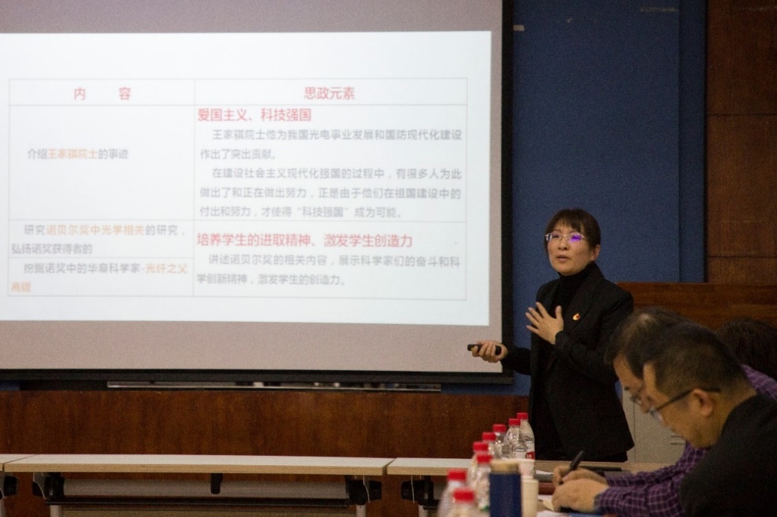 研讨会邀请到教育部高等学校物理学类专业教学指导委员会专家、东北师范大学新利·体育(中国)官方网站党委书记李金环做主旨报告《依托学科的光学课程群“课程思政”建设探索》。李金环阐述了个人对课程思政的认识,介绍了东北师范大学在课程思政建设方面的探索举措,展示了东北师范大学“手拉手团队”对普通物理课程中思政元素的梳理成果,并指出:课程育人是“三全育人”最重要的组成部分,课程思政建设将以评价方式创新为突破口,倒逼教学模式改革。