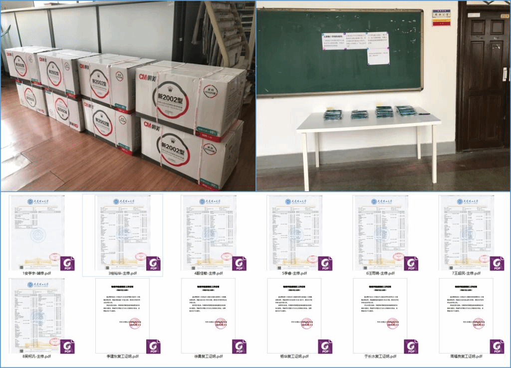 为做好学院建筑内疫情防控工作,保障到校教职工安心开展工作,学院为所有到校工作的教职工配备了定量的防护口罩,以“零接触”方式发放;党委办公室通过开具电子版复工证明,省去教师到校领取手续的环节;大四本科生求职需要成绩单,毕业生辅导员通过校内自助机无卡打印,再制成扫描件发给学生;此外,学院给留校学生也置备了一定量的防护口罩,进一步体现对学生的人文关怀。面对疫情,学院班子与行政人员进一步增强服务意识,确保师生群体的实际需求均及时得到解决。