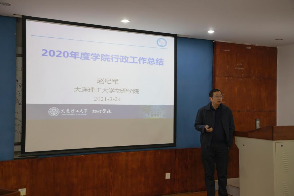 学院院长赵纪军围绕2020年度学院行政工作进行汇报,从师资队伍建设、人才培养情况、科学研究情况、国际合作与交流情况、招生与就业工作情况和其他行政工作情况等方面依次展开。赵纪军表示,过去一年中学院取得的成果固然值得肯定,但是也存在着不小的可以进一步提升的空间;2021年学院行政工作要点是直面问题,补齐短板,合理规划教师科研和学生培养的相关工作,保证各项工作计划顺利实施。