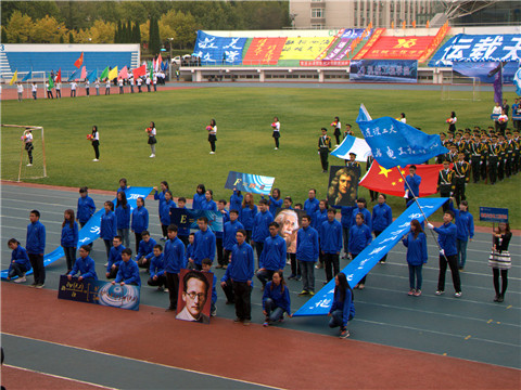 19日中午1点,运动会开幕式隆重召开。新利·体育(中国)官方网站方阵的运动员身穿蓝色运动服,迈着矫健的步伐走过主席台。他们手中高举牛顿、爱因斯坦和薛定谔的头像,以及这三位科学巨人提出的公式,展现了物理学对人类的巨大贡献。同时,他们高呼“物理光电,真金火炼,奋勇争先,突破极限”的口号,表达了物理健儿在运动会上力争上游的决心。