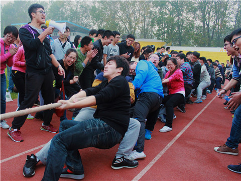随后的比赛更加精彩,场上运动员奋力拼搏,场下观众们掌声雷动,呐喊不断,为场上拼搏的物理健儿们加油助威。运动会比赛期间,物理与光电工程学院研究生辅导员王文春教授亲临现场给运动员们加油打气。运动健儿们通过自己的努力,取得了一项项可喜的成绩。宫振峰获得了男子200米冠军,跳绳和拔河两个集体项目也都成功折桂。