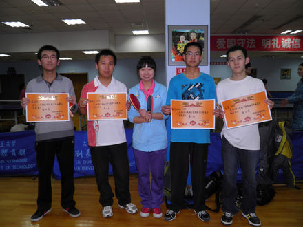 经过一轮又一轮残酷的淘汰赛,最终来自11级队的欧阳山山同学取得了男子单打的冠军,08级队的韩永华同学获得亚军,10级队的王昊和夏志强同学分别获得了男子单打比赛的三四名。女子单打的冠亚军则分别由来自09级队的刘文博和徐倩同学获得。在这次比赛中每一位选手都表现出了拼搏进取的精神,绽放出了青春的活力。