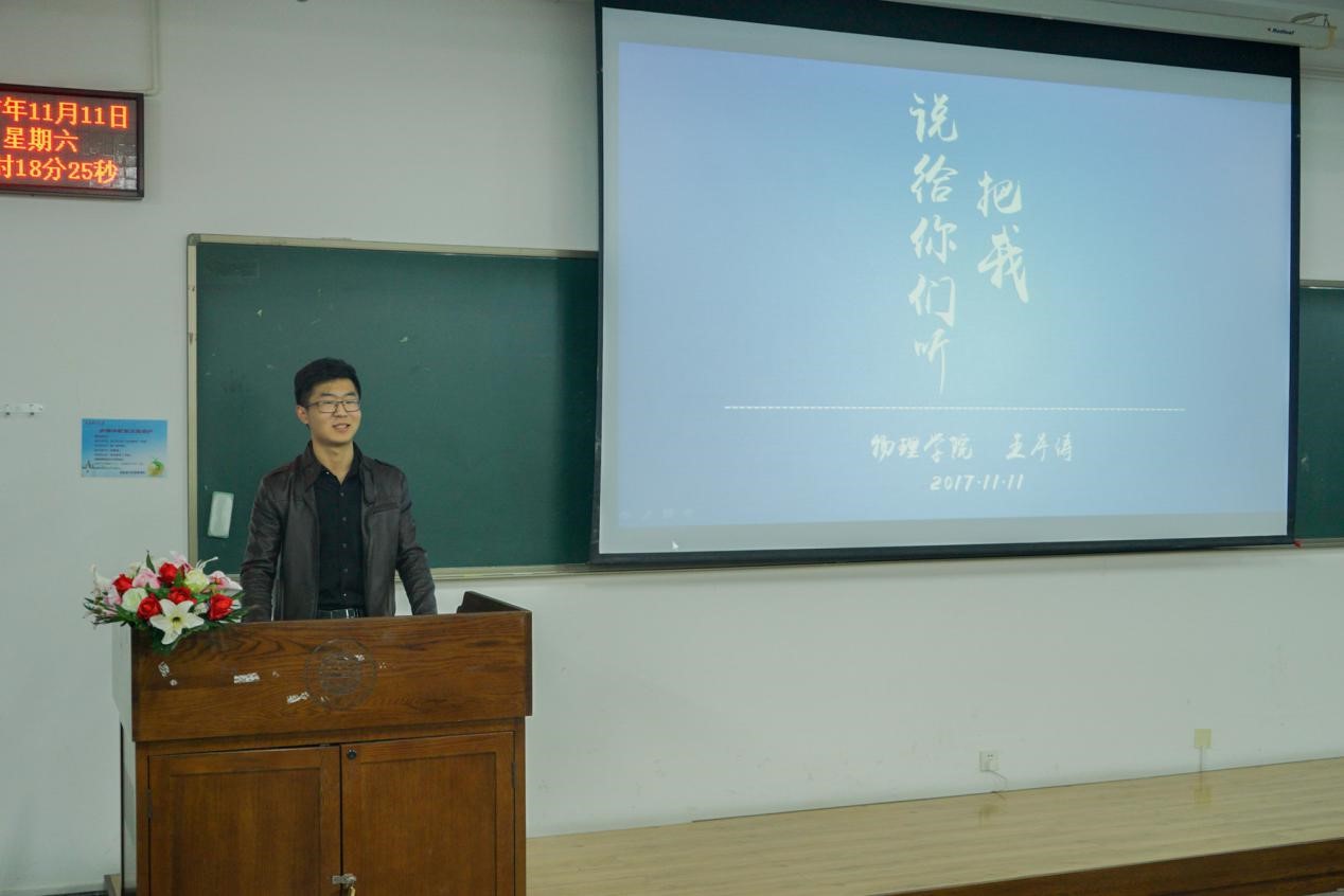 前学生会主席兼团委副书记王序涛用诙谐幽默的语言分享了自己在学习工作方面丰富的经验,还结合自身学习、恋爱和工作的经历表达出他对大学生活的思考。这使大家对大学生活有更深的向往,并对工作与学习的权衡有更理性的认识。