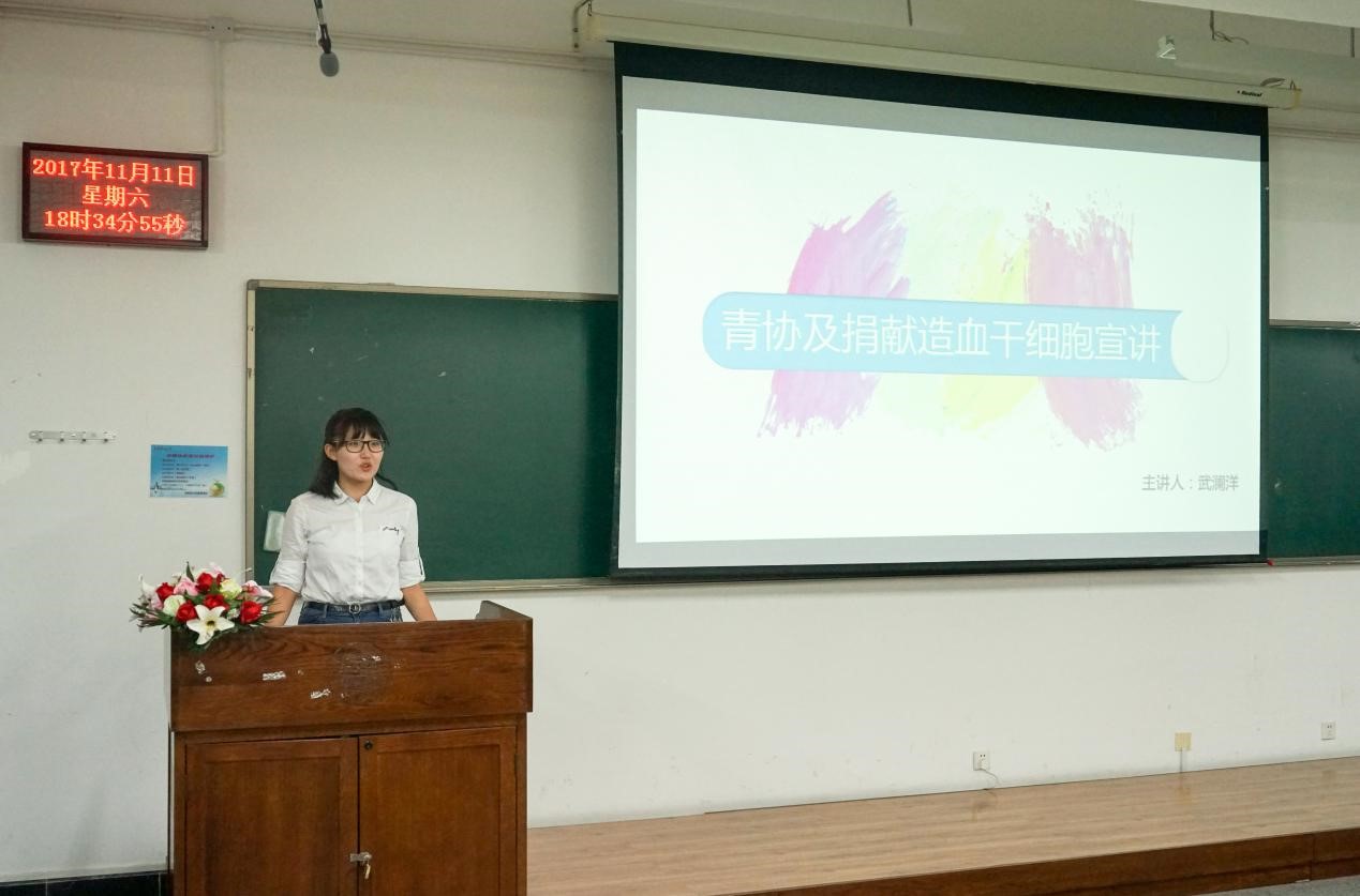 本次团校以经验分享为主题。来自青年志愿者协会的武澜洋对青年志愿者的活动进行基本描述,除关爱儿童和老年人的一些活动之外,还着重向同学们介绍有关献血,捐献造血干细胞的知识。她还讲了寻找配型骨髓的不易,以及加入骨髓库能带来的益处。这引起同学们的思考,个人与社会有着密不可分的联系,若每个人都能为社会奉献出自己的一份力量,那么离十九大提出构建和谐美好的社会目标就会更近一步。