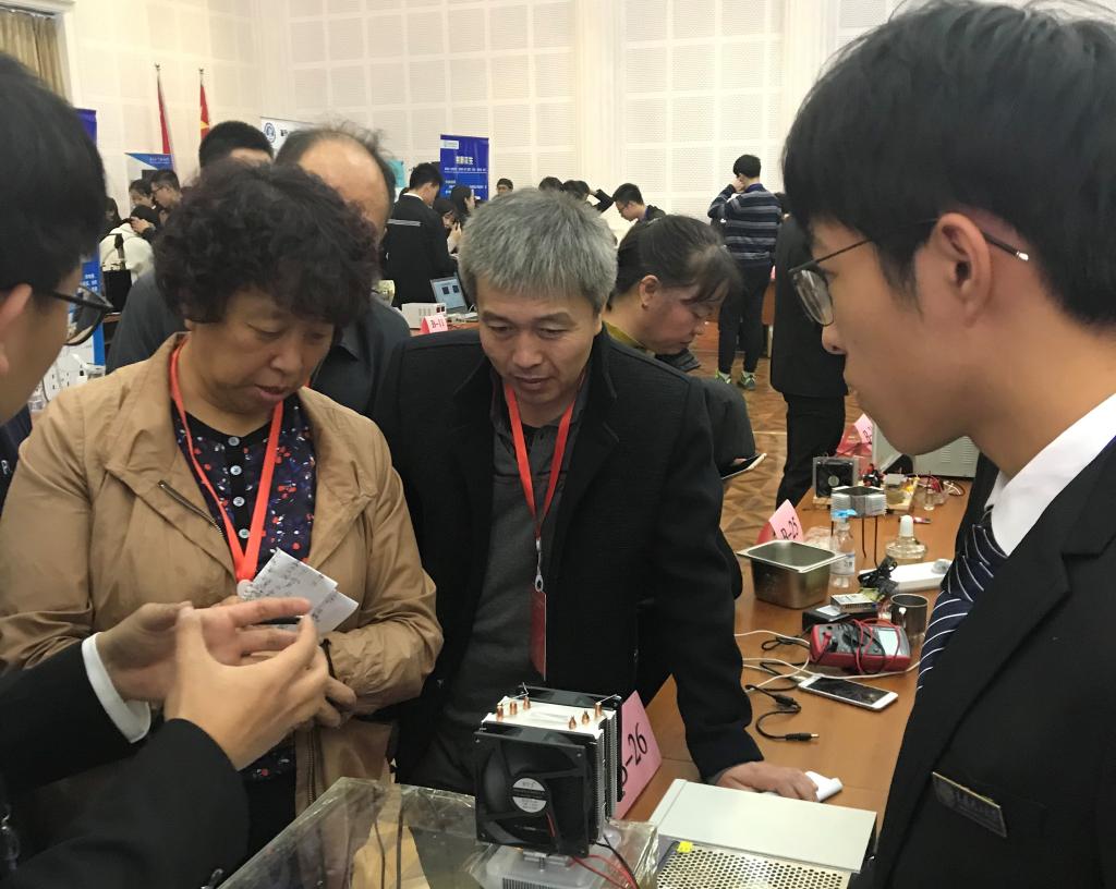 当日9点,比赛进行实物测评环节。每道赛题各一组评委老师一个队伍一个队伍地进行实物观看和提问,主要针对实物成品度、精度、创新性等进行初步了解。