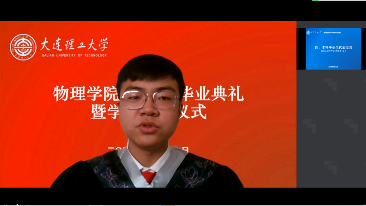 在大连理工大学校歌悠扬的旋律中,2020届毕业典礼暨学位授予仪式落下帷幕。请君试问东流水,别意与之谁短长。愿物理学子不忘初心,砥砺前行,不负恩师期望,在逐梦之路上勇往直前、青云直上!