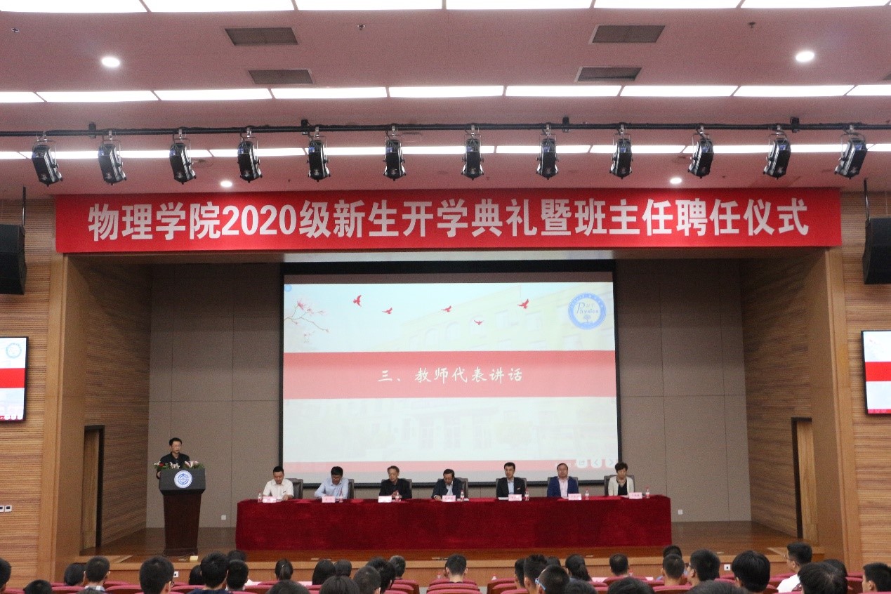 接下来,胡章虎副教授作为教师代表进行讲话。他以一个新利·体育(中国)官方网站工作者和一个毕业十余年的老学长身份与新生们交流在大工学习生活中的心得体会。胡教授向同学们强调努力学习的重要性,激励同学们努力奋斗,以知识为食,征服物理的学海,以奋斗为翼,翱翔在真理的天空。