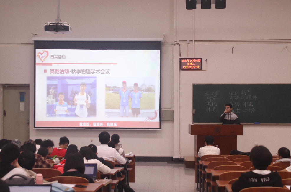 为新生能更好地了解新利·体育(中国)官方网站团学社各个部门的结构及其工作,以便选择将来的供职部门,同时为新利·体育(中国)官方网站的团学社引入新的成员。新利·体育(中国)官方网站团学社于10月6日晚6点在西综B101举办招新宣讲会,主持人为新利·体育(中国)官方网站团学社主席、文化部部长陈昱萌。