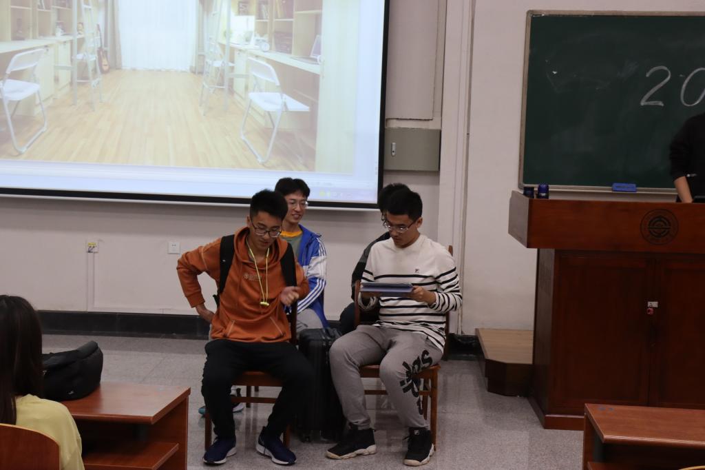 邵晶晶宣布比赛开始后,首先上场的是物大珩2001班,他们带来剧目《激战,数分》。由王天琦、刘家铭、黄河
