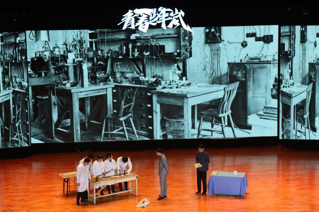 表演从1949年王大珩从英国回国拉开序幕。从英国归来的王大珩辗转来到解放区,并参与筹建大连工学院,王大珩先生时任第一任应用物理系主任。面对当时一穷二白的教学条件,王大珩先生带领同学们从头开始,亲自编写教材、组装仪器等。在饰演王大珩的李雨萌同学的脸上,表现出来的是王大珩先生的从头开始的决心与迎难而上的勇气。即使面对英国昌司公司的盛情邀请,王大珩先生仍然选择继续留在国内来筹建未完成的物理系,正如大珩先生所言:“如果能为国家培养出高素质的应用人才,我愿意留下!研制光学玻璃,是我的理想。但是国家现在需要人才,我就一定要将这应用物理系建起来!现在是基础落后、人才短缺,可正因如此,才需要我们这代人踏出一条路,为后来人创造希望!”。王大珩先生的这席话不仅仅体现他留下来的决心,也体现了他对他的学生以及我们后代人的教诲!