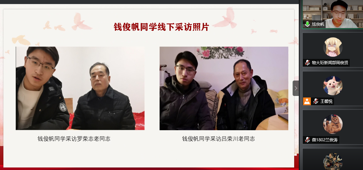 在这之后,来自微电子学院的闻新亮也介绍自己所带领的实践队在对于扶贫的调查与走访,他们先后走访河南光山、安徽合肥、山西万荣、辽宁大连四地,与当地的居委会等相关组织进行紧密对接,了解当地脱贫攻坚战情况,并采访了当地的贫困户。在此之后,还有几支优秀实践队介绍了他们采访老党员,进行互动的情况,同样十分优秀。