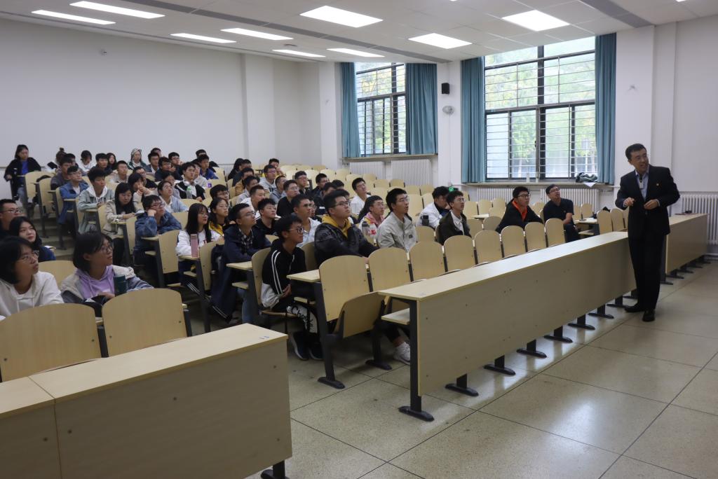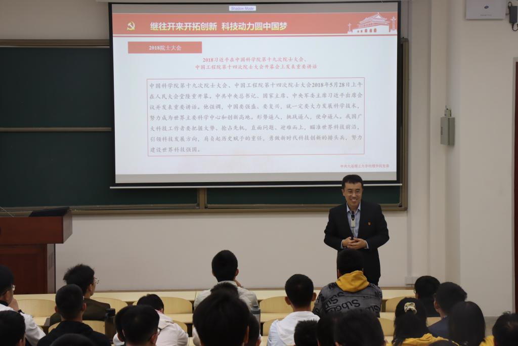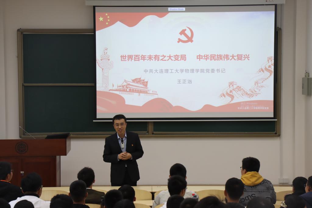 王正汹书记以“世界百年未有之大变局,中华民族伟大复兴”为主题,从几日前美国核潜艇在我国南海撞上不明物被迫浮出海面的新闻讲起,联系近年来世界局势变化,讲述我国科技的进步。从两弹一星代表人物中国“光学之父”王大珩、“航天之父”钱学森、“两弹元勋”邓稼先等老一辈科学家的艰苦奋斗,到两弹一星的重要成果氢弹、导弹、人造卫星的问世;从王大珩、王淦昌、杨嘉墀和陈芳允四元老提出的“863”计划到更进一步的“973”计划,都展示出我国科技实力的飞跃。同时王正汹书记也对同学们提出自己的期望,即把自己的青春投身于祖国新的科学技术发展之中,阐释科学技术是第一生产力,“科学事业建立新功”的硬道理。