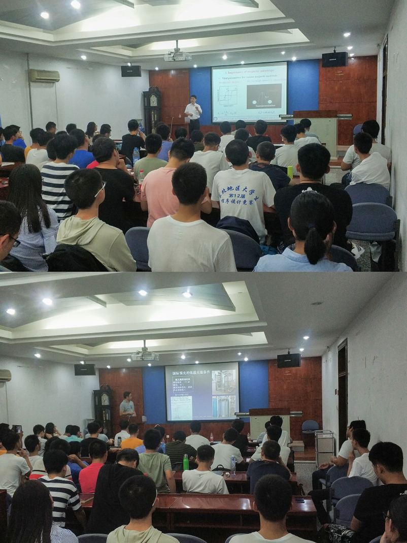 9月12日晚,新利·体育(中国)官方网站322会议室开展“科学家面对面”专题学术报告活动,中科院物理所成昭华、程智刚两名研究员先后做专题学术报告。其中国家杰出青年基金获得者,中科院百人计划入选者成昭华研究员做《磁性纳米结构与飞秒磁性》专题报告、中科院百人计划特聘研究员程智刚做《量子计算与拓扑超导体》专题报告,讲座现场座无虚席,听会学生反响热烈。报告环节结束后,物理所研究生部科教结合业务主管汪庭语老师就“严济慈班”招生详情进行宣讲。